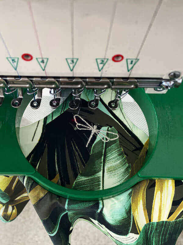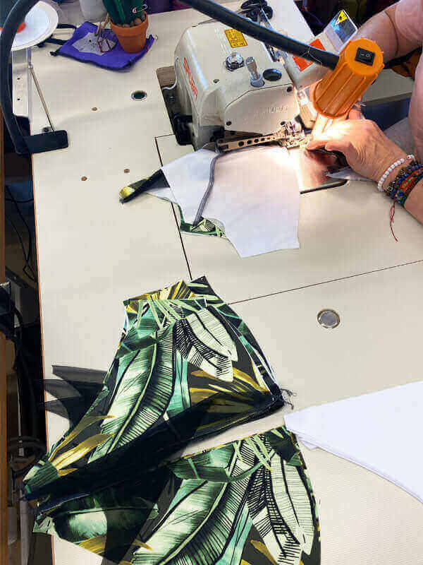 Etikett vorbereiten, Produktnummer zuweisen, zur Stickerei bringen, zu den Nähmaschinen bringen.